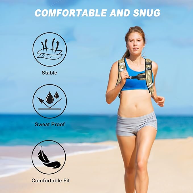- Adjustable Straps & Reflective Stripes: Each weighted vest has adjustable straps to prevent slipping or sliding, ensuring a better fit for users of all chest sizes and improving exercise efficiency. The reflective strips on both sides of the weighted vest reflect vehicle headlights for safer night running, keeping you away from traffic accidents in any weather conditions (rain, fog, darkness), day or night