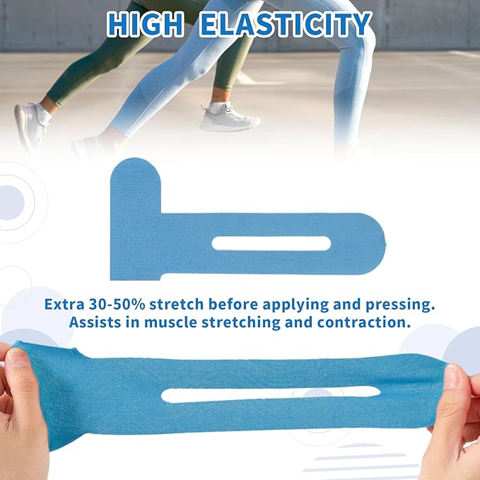 - Elastic & Durable Stretch - Pre-cut kinesiology knee tape is built with strong elasticity, this muscle tape for pain relief stretches up to 150%, flexing with your kneeβs movements while resisting tears from regular use