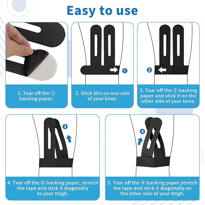 - Pre-Cut & Perfect Fit - Our kinetic tape is designed specifically for knees, each knee tape is pre-cut to fit snugly and securely. This tailored fit maximizes comfort, providing reliable knee support during activities like running and intense workouts