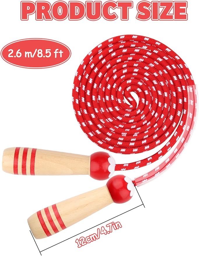 - 【KIDS JUMP ROPE】You will get 1 pcs 8.5ft/2.6m length children's skipping ropes with wooden handle(Red), which boys and girls like. Fun activity games can play with friends or family.