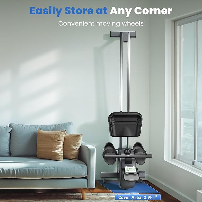 - Compact Storage & Easy to Move: Vertical design of the rowers for at home exercise takes up less space than a small stool; built-in transport wheels make it easy to move and store anywhere in your home—perfect for small apartments or shared spaces