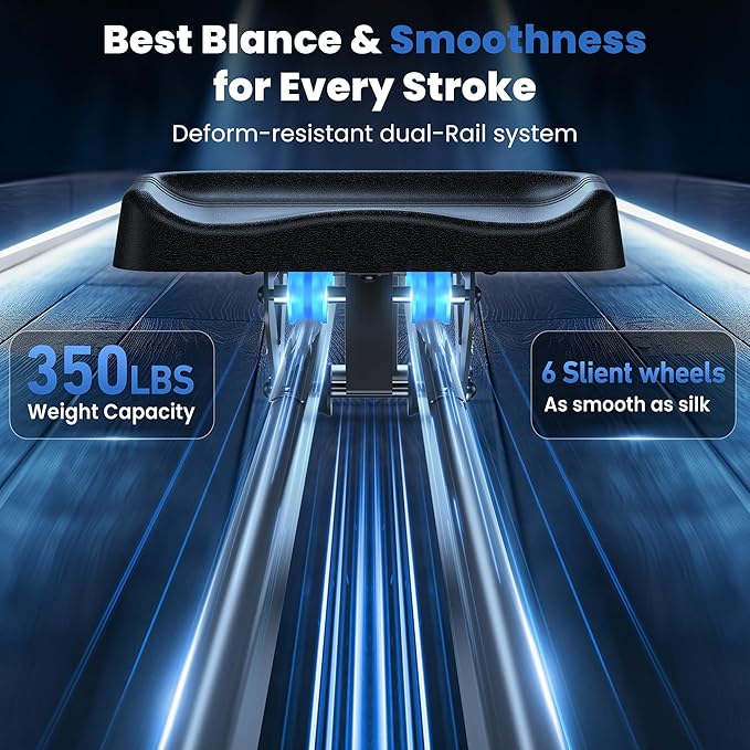 - Stable Dual-Rail Frame Supports 350 LBS: Dual-track aluminum alloy frame ensures smoother strokes and lasting durability; supports users up to 350 lbs with 41 inches of leg space—ideal for users up to 6 feet tall