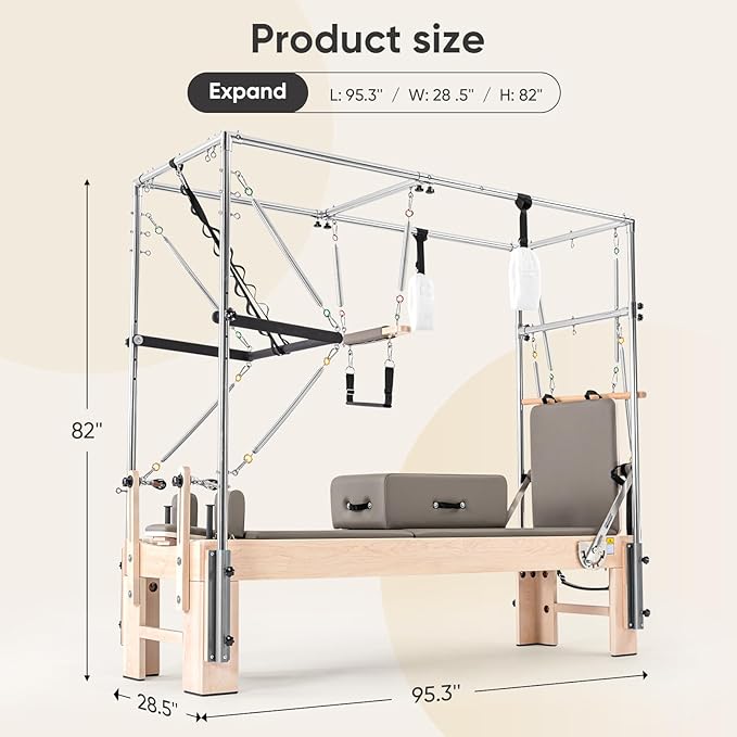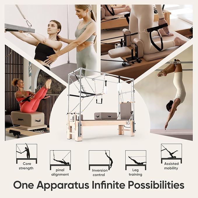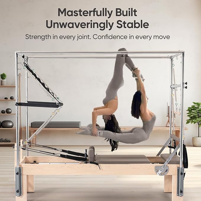 - 【A Lifetime Investment for Evolving Pilates Journeys】Spacious, supportive, and thoughtfully engineered, this unit is built for solo sessions, assisted movement, and even partner work. Designed for those who view Pilates as a lifelong discipline, it provides the versatility, presence, and durability to grow with your evolving practice.