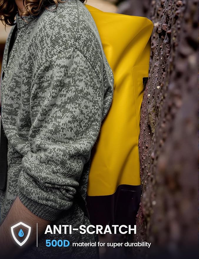 - Superior Waterproofing - Stay prepared for any adventure with the Lamicall 30L Waterproof Dry Bag, crafted from heavy-duty 500D PVC fabric for superior protection against rain, snow, sand, and dust. Whether you're kayaking, hiking, or hitting the beach, this 30L yellow dry bag ensures your phone, camera, clothes, snacks, and documents stay completely dry and secure. Note: While highly water-resistant, this dry bag is not designed for full submersion.
