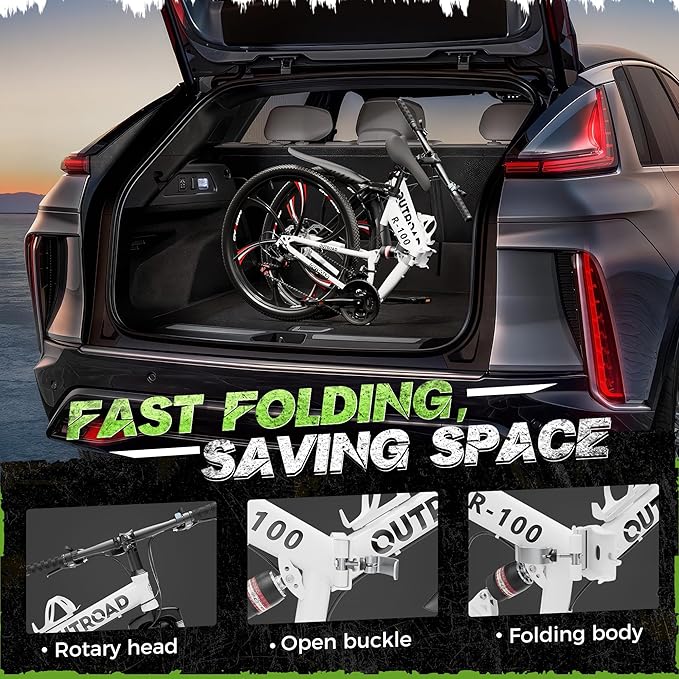 Outroad Folding Mountain Bike Foldable/Unfoldable Bike 26 Inch for Adult, 21-Speed Dual Suspension High-Carbon Steel MTB Foldable Bicycle, Dual Disc Brake Folding Bikes for Women and Men