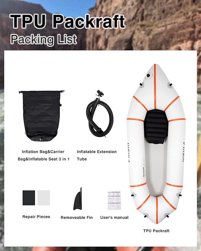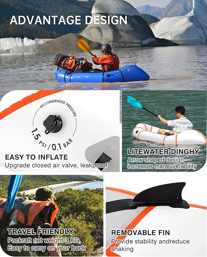 - Engineered with an upgraded high-flow valve and arrow-shaped hull for precision maneuverability, our packraft inflates 30% faster than competitors. The ergonomic inflatable seat cushions every adventure, while the spacious deck accommodates gear, pets, or bikes—perfect for multi-day explorers.