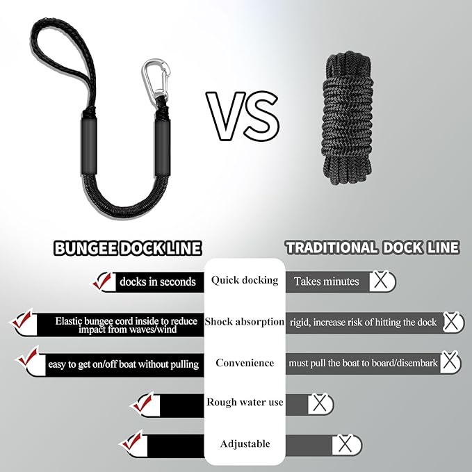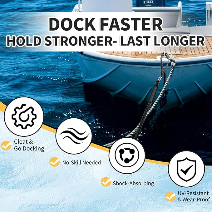 - QUICK & EASY DOCKING – No knots needed! Simply loop over cleats for secure docking in seconds. Perfect for solo boaters, jet skis, and kayaks.