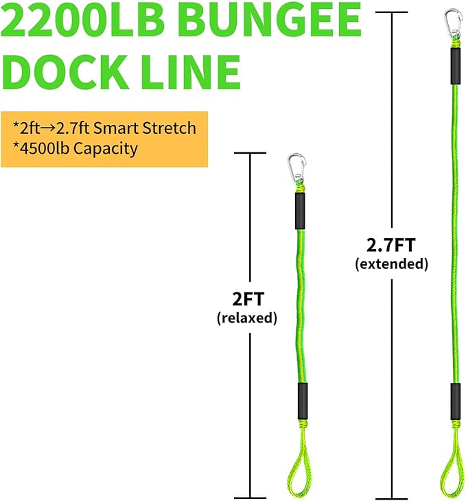- CONVENIENT LENGTH: 2-foot length is ideal for smaller watercraft and provides adequate stretch for standard docking situations
