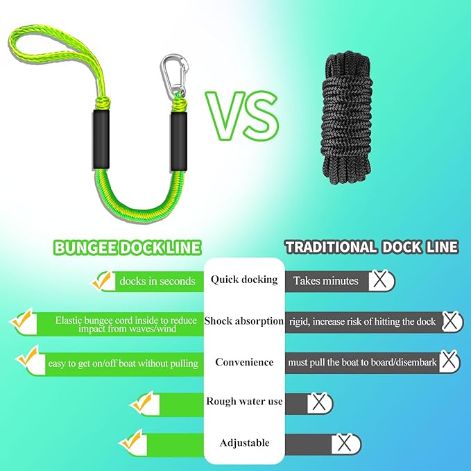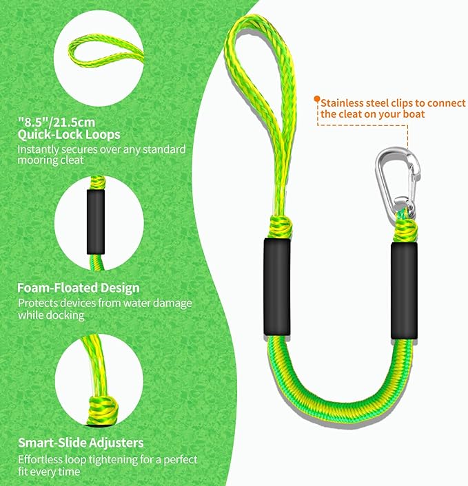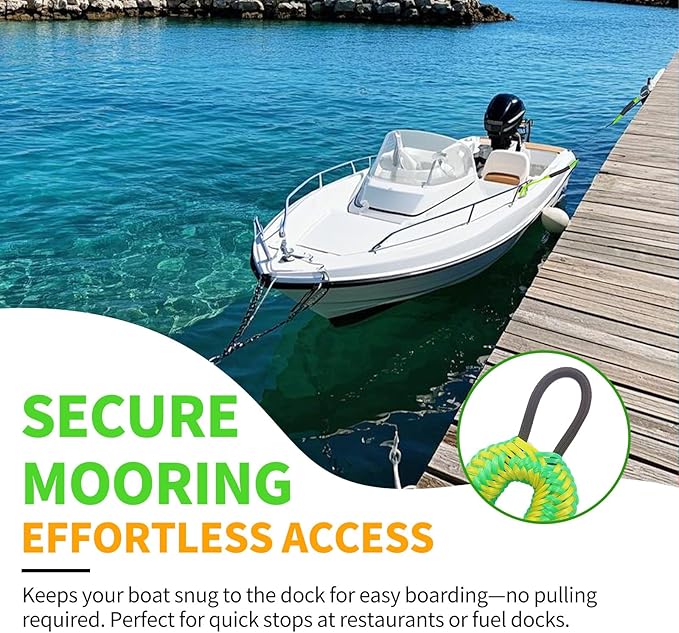 - QUICK & EASY DOCKING – No knots needed! Simply loop over cleats for secure docking in seconds. Perfect for solo boaters, jet skis, and kayaks.