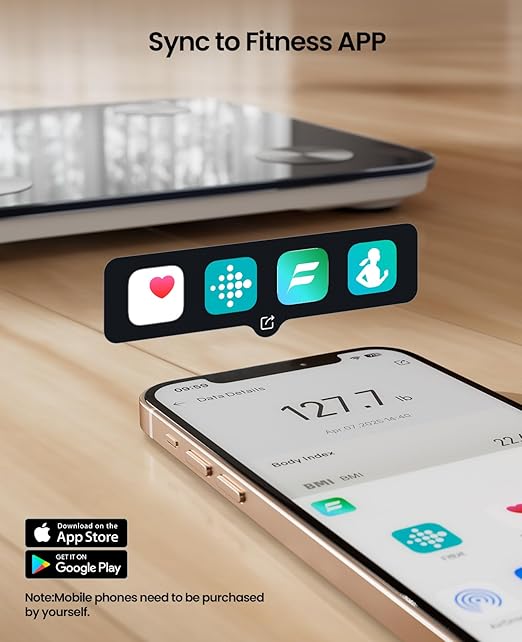 - Seamless Data Sync: The scale for body weight need to download the Fitdays+ App and complete registration. Once set up, the smart app can sync with Samsung Health, Fitbit, and Apple Health