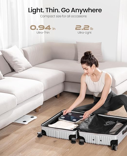 - Precision Body Scale: Featuring 4 advanced sensors, this smart scale delivers highly accurate measurements in 0.1 lb/0.05 kg increments (400 lb capacity). The 10.2" tempered glass platform ensures durability and consistent results with every weigh-in