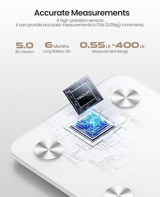 - Reliable Accuracy: Four high precision sensors deliver consistent measurements up to 400 lbs with 0.1 lb (0.05 kg) sensitivity. The scale for body weight automatically calibrates for precise weight tracking, supporting personal fitness and family wellness goals