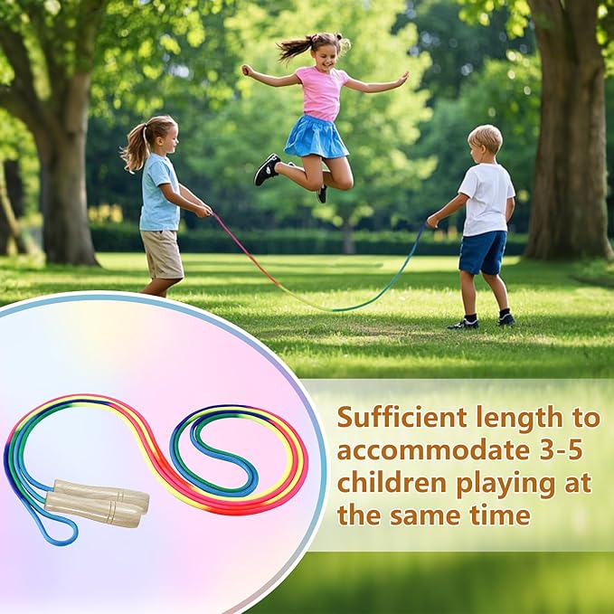 - Adjustable and Easy To Use: This rainbow jump rope has an adjustable length, allowing you to customize it to your preference. It features high-quality wooden handles with an ergonomic design for extra comfort.