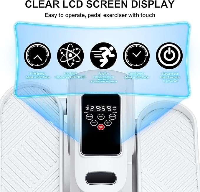 - 12 ADJUSTABLE SPEEDS & 2 MOVEMENT DIRECTIONS: This ellipse leg exerciser features 12 adjustable speeds and 2 movement directions (Forward and Reverse). These options let you customize your exercise routine. Whether for rehabilitation, building leg strength, or relaxing foot joints, you can easily find the right speed and mode for your needs. Provide you with diverse training possibilities to elevate your exercise routine.
