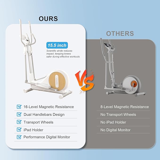- 16 RESISTANCE LEVELS&POWERFUL 14 LB FLYWHEEL: Customize your workout with 16 adjustable resistance levels and a 45° climbing stride motion.The 14 lb flywheel delivers a smooth,challenging ride for all fitness levels—perfect for those comparing to a Sole E25 elliptical,NordicTrack elliptical,or recumbent elliptical cross trainer.