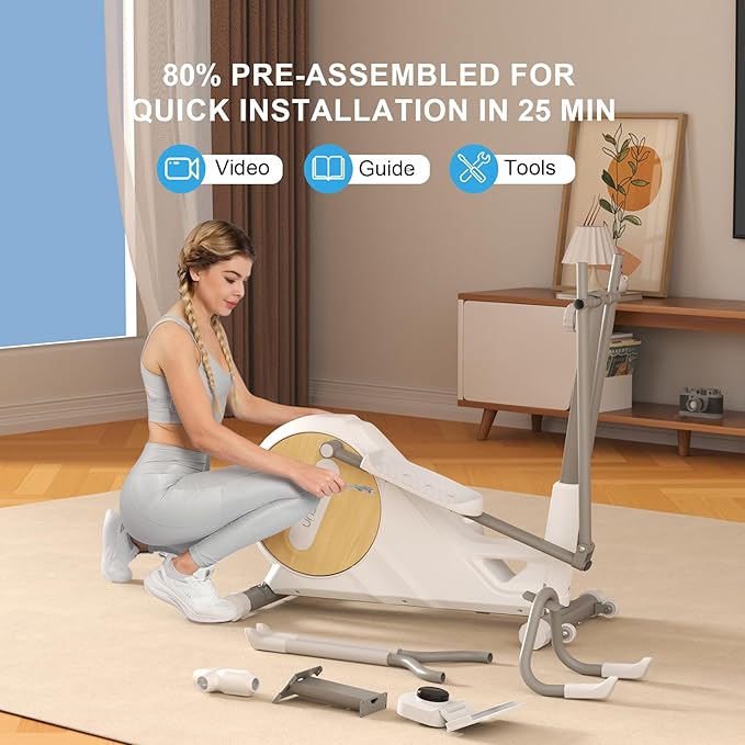 - 10-MINUTE ASSEMBLY&WORRY-FREE SUPPORT:Our Elliptical Exercise Machine for home arrives 85% pre-assembled,so you can set it up in just 15 minutes.We offer a two-year parts replacement&are always here to help—just reach out via Amazon with any questions.