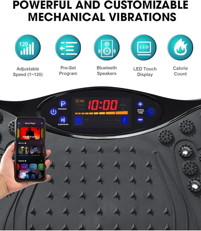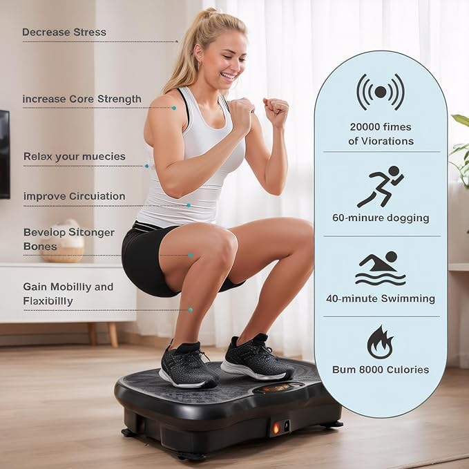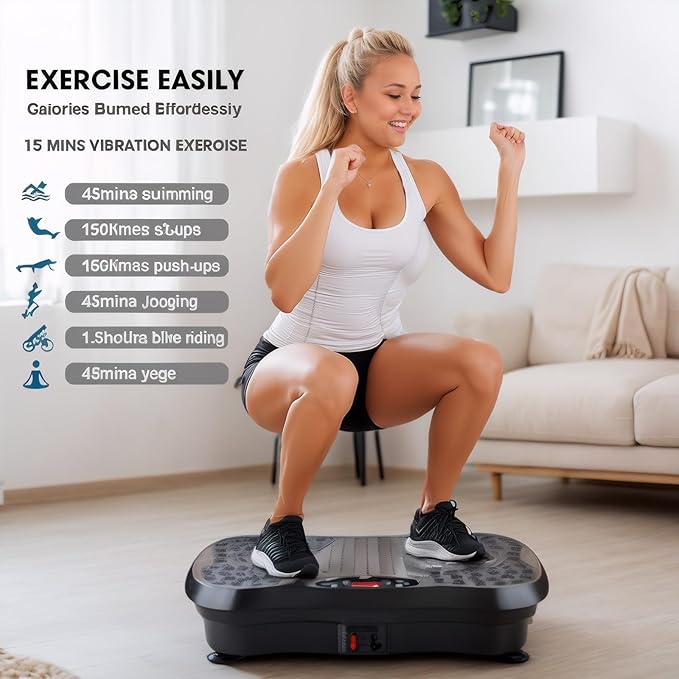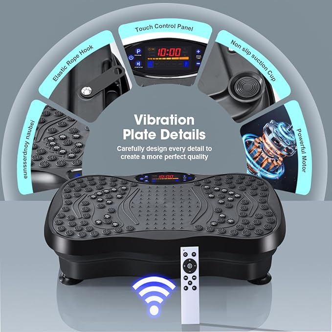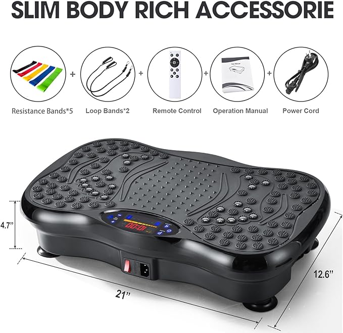 - 5. Bonus Accessories for Complete Training Includes Pilates stick + resistance bands for targeted leg, arm, and shoulder workouts. Perfect for strength training, cardio, weight loss, shaping, and fat burning—all-in-one home gym solution. #VibrationPlate #HomeFitnessEquipment #PainReliefFitness #BoneDensitySupport #WorkoutAccessories #LymphaticDrainage