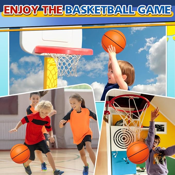 - Perfect Size & Versatile Play: Designed with a 9-inch diameter, these mini basketballs ensure better grip and control for kids, ideal for indoor games, pool hoops, door-mounted hoops, or backyard play. Compact yet durable, they promote hand-eye coordination and active fun for all ages.