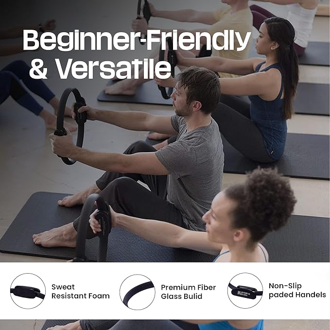 Premium Pilates Ring Fitness Circle - Lightweight Durable Foam Padded Handles, Flexible Resistance Exercise Equipment for Toning Arms, Thighs, Legs & Core