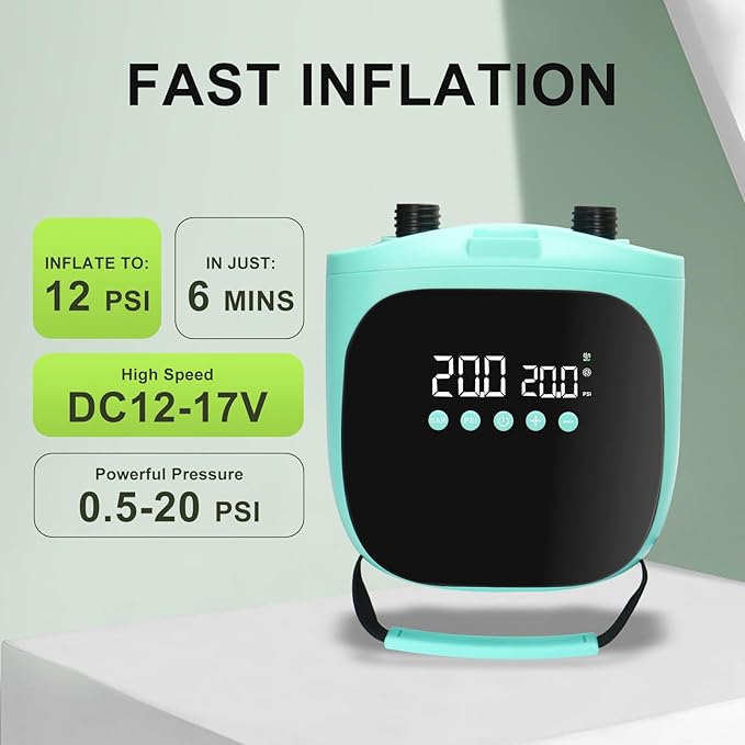 Electric Paddle Board Pump – 20PSI High-Pressure Electric SUP Pump Air Pump with Auto Shutoff, Dual-Stage Inflation for Paddle Boards, Kayaks, Tents, Boats & Inflatables Green