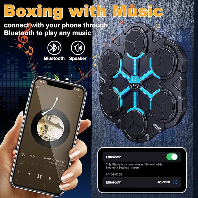 - [Fun & Engaging Fitness Experience] Combine music and boxing for a unique workout! This Wall Mounted Music Boxing Training Equipment turns exercise into an exciting, rhythm-driven activity. Release stress, burn calories, and enjoy a fun fitness party at home or in the gym.