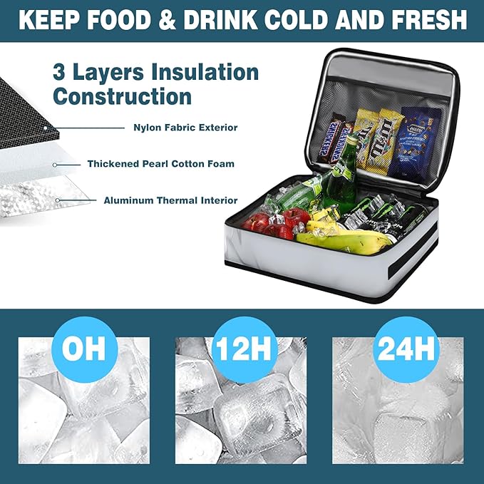 - [Keep Chilled]--Featuring a insulated construction including a sturdy nylon fabric exterior,thickened pearl cotton insulation foam and aluminum thermal interior,the SUP cooler bag keeps your food and drinks cold in the hottest temperatures and keep your refreshments chilled all day long.