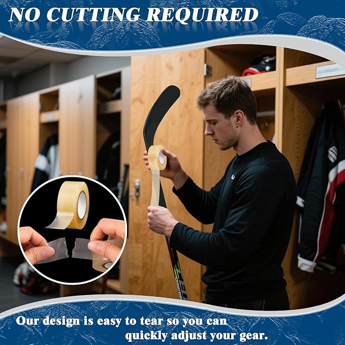 - STRONG, LONG-LASTING ADHESION: The Clear Hockey Tape features a strong, water-resistant adhesive that ensures it sticks where you need it, no matter how intense the game gets. Perfect for both indoor and outdoor hockey rinks, this tape stays put through sweat, rain, or snow.