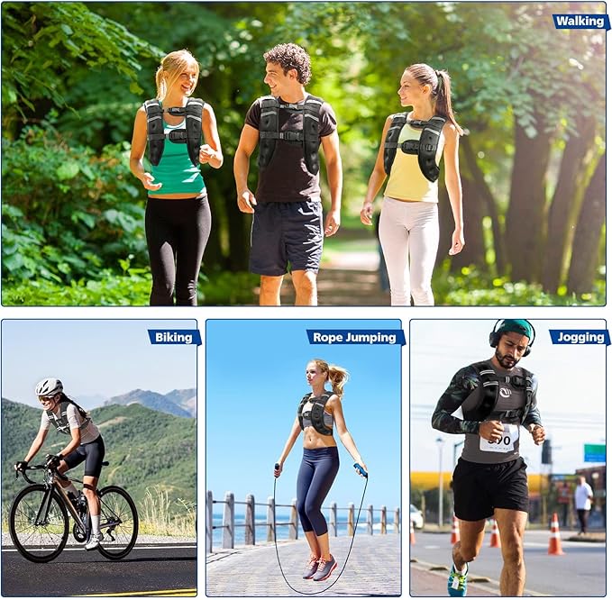 - ♥【Ergonomic Weight Distribution Design】: Balanced weight distribution of this 6lb/8lb/12lb/16lb/20Lb/25lbs weighted vest for women men,makes the upper body weight even,reduces shoulder fatigue,and improves exercise efficiency.Whether you're training for a specific sport or want to improve your overall fitness,our weighted vests for women and weighted vests for men are perfect for all types of strength training, muscle building, stair climbing, weight loss, weightlifting, walking, running more