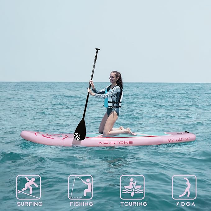 - 2. Crafted from military-grade materials, the AIR-STONE paddle board is ultra-light and durable. Enjoy a comfortable, non-slip EVA deck for safety and stability during your water activities.