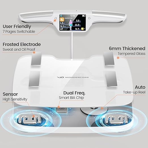 Wonder Core FitSpec Smart Body Fat Scale, Digital Bathroom Scale with 8 Electrodes for Accurate Weight, BMI, Muscle Mass & 55 Points Body Composition Analyzer