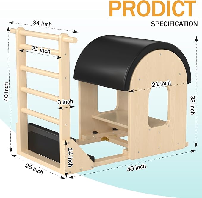 - [Premium Wood Design]: Pilates reformer adoption of Solid wood design allows for home or professional use. Equipped with specific leather, which is tear-resistant, wear-resistant, anti-aging, breathable, and not stuffy. The high-density EVA foam padded inside leather, is moderately soft and hard. Making your workout comfortable.