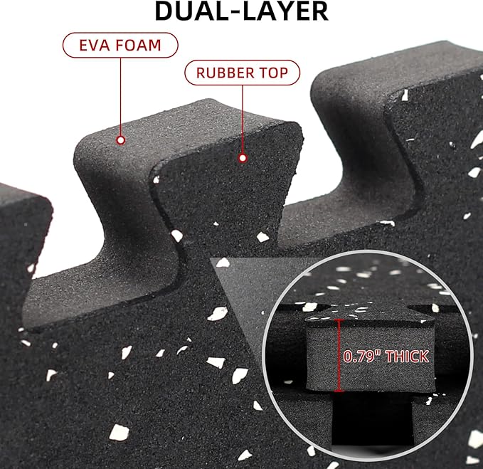 0.79in Extra-Thick 72 Sq Ft Exercise Equipment Mats, 18 Tiles Rubber Top EVA Foam Workout Mats, Interlocking Gym Flooring for Home Gym, 24 x 24in, Black & White
