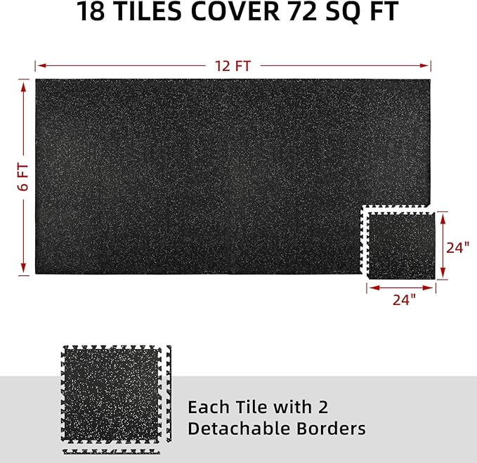 - Easy to Assemble and Detach: Each workout mat set has 18 pieces, and each gym mat has 2 removable borders. Interlocking design, simple assembly, and detachment