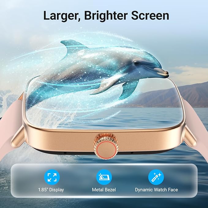 - 【Advanced Health & Fitness Tracking】Stay on top of your wellness with 24/7 monitoring features like SpO2 blood oxygen, heart rate, step count, calories burned, sleep stages, distance, and stress levels—all displayed on a stunning 1.85" full-touch screen(Non-medical use)