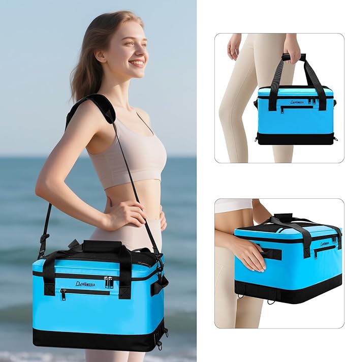 - VERSATILE CARRYING OPTIONS - Our sup cooler for paddle board is designed with your comfort in mind, featuring a padded top handle for a secure and ergonomic grip. The side handles provide additional flexibility, while the adjustable shoulder strap offers a convenient hands-free carrying experience, the perfect companion for all your outdoor adventures.