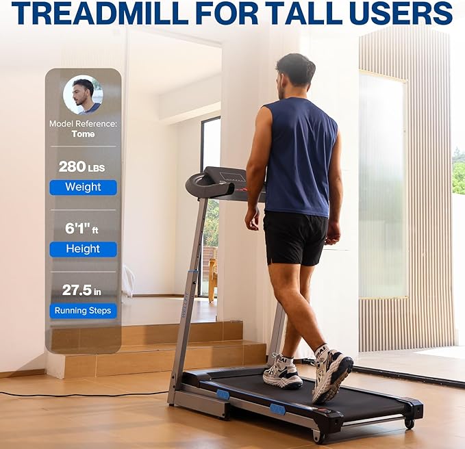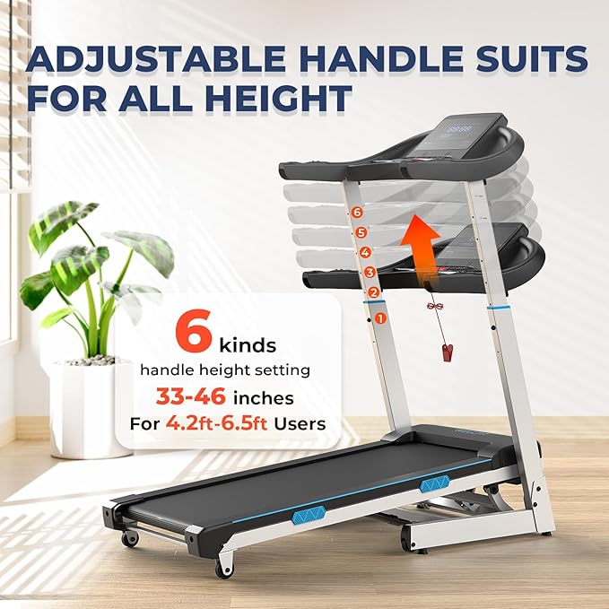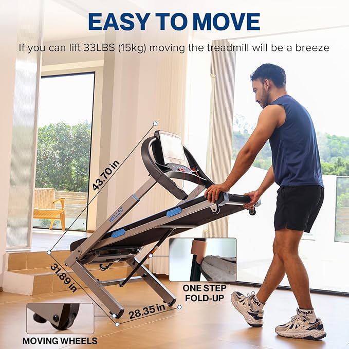 WELLFIT TM007 Auto Incline Treadmill, 4.0HP Heavyduty Treadmill for 400lbs+ Capacity, Adjustable Height for 5'2"- 6'4" Users, 95% Assembled, LED Console, 45*18 Large Area, 8.7MPH, Foldable Space Saver
