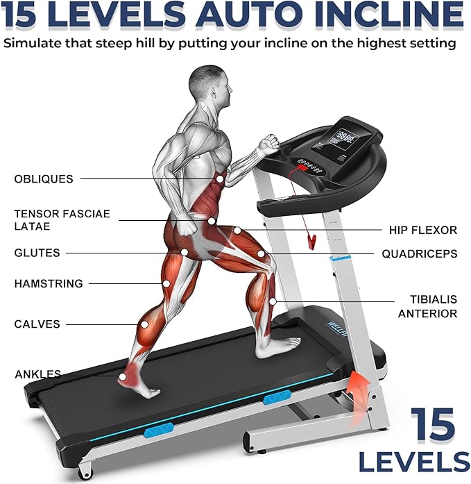 - 0-15% AUTOMATIC INCLINE TREADMILL: Adapt advanced “Quiet Drive” technology, allows you to change the incline and decline without unnecessary noise. The incline feature lets you change up your workout and burn more calories (weight loss).