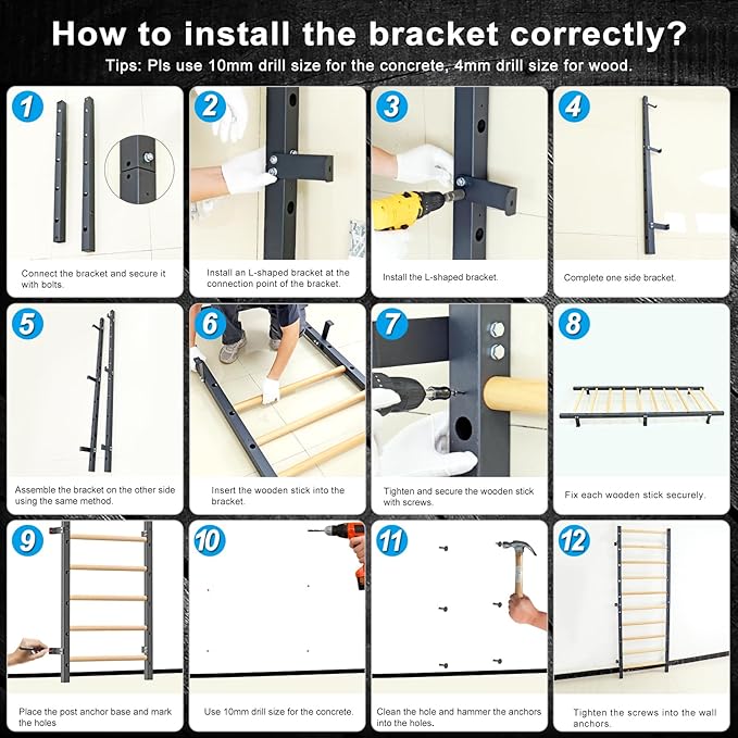 - 【FAMILY FITNESS FUN】With 11 wooden handles ranging from 7.2 inch to 86.8 inch in height, the wall gym equipment is perfect for family workouts and stretches, from children to adults