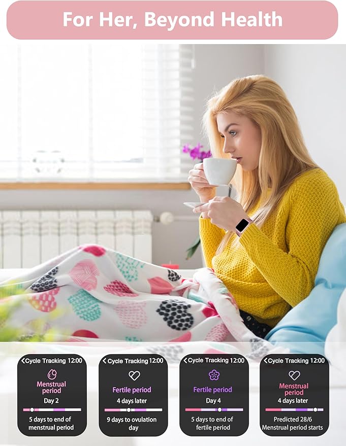 - Health Partner Smartwatch: The fitness smartwatch monitors blood oxygen, stress, and 24/7 heart rate. It also tracks your sleep and breathing quality in real time, keeping you informed of your basic health status. This stylish metal pink watch not only exudes elegance but also features a dedicated menstrual cycle reminder designed specially for women, offering care down to the smallest detail. Whether for everyday wear or special occasions, it's your perfect choice!