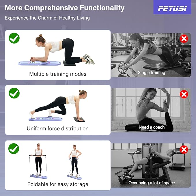 - 【Universal Versatility】 The multi-form design of the FETUSI pilates board enables it to meet the needs of fitness enthusiasts with different needs. Whether you are a fitness beginner or a fitness expert, this 7-in-1 pilates reformer machine can effectively support progression across skill levels for seamless evolution in home gym routines and can effectively assist in the transition from a fitness beginner to a fitness expert.