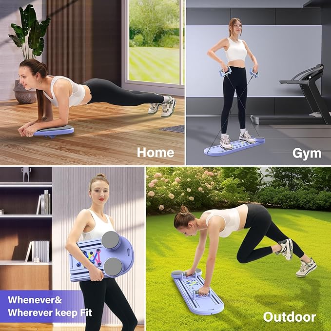 - 【Upgraded 7-In-1 Pilates Board】Compared with the traditional 7-In-1 pilates equipment, our pilates reformer set combines the functions of pilates board, resistance band, ab wheel, push-up handle, balance board and plank support, and can be combined into at least 8 forms, unlocking at least 20 exercise movements; helping you to effectively exercise your whole body muscles, achieve the effects of full body exercise, body shaping, fat loss, and body improvement.