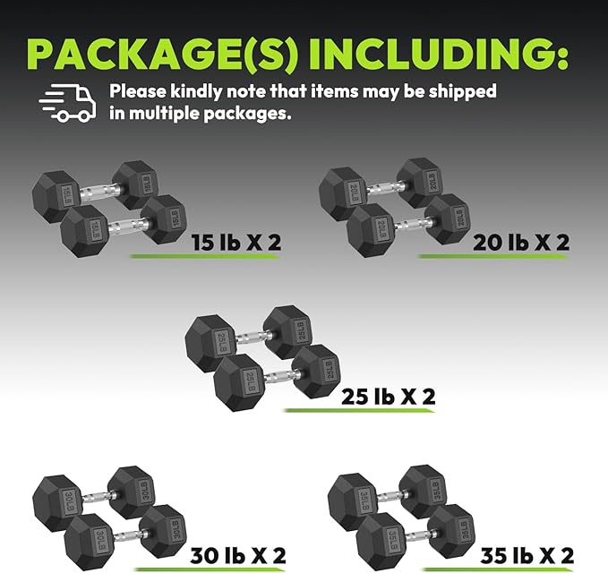 - Premium Rubber Encasement: Include a pair of ( 15 lb 20 lb 25 lb 30 lb 35 lb ) hex dumbbell weight made from solid cast iron cores and virgin rubber coating, these dumbbells resist cracking and fading while protecting both your floors and equipment. The durable rubber shell absorbs impact for quieter workouts.