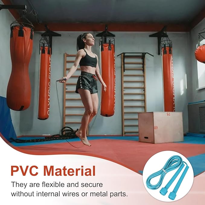 - Color: Peacock Blue; Material: PVC; Rope Length: 280cm / 110 Inch; Handle Length: 125mm / 5 Inch; Rope Diameter: 4mm / 0.16 Inch; Overall Length: 304cm / 120 Inch; Packing List: 2 Pcs Jump Ropes