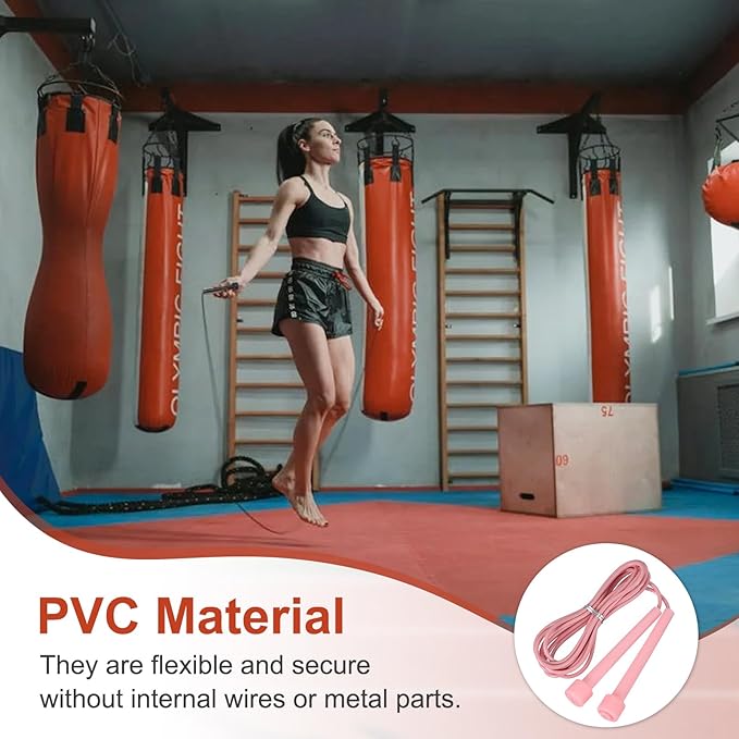 - Color: Pink; Material: PVC; Rope Length: 280cm / 110 Inch; Handle Length: 125mm / 5 Inch; Rope Diameter: 4mm / 0.16 Inch; Overall Length: 304cm / 120 Inch; Packing List: 2 Pcs Jump Ropes