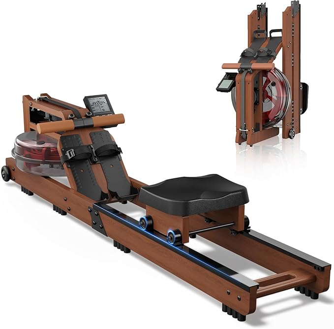 - Foldable Design:Crafted from high-quality premium rubber wood, this rowing machines for home features a durable, stylish frame that combines natural elegance with modern design,The foldable structure saves space and fits seamlessly into any home or gym. A stable, low-center base minimizes wobbling for a smoother, safer workout.The oversized water tank provides ample resistance, allowing you to adjust your rowing speed and time for a more realistic, immersive experience.