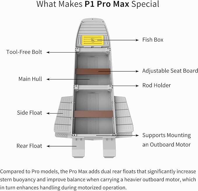 - 【Tailored for Fishing Enthusiasts】The front of the boat features a built-in fish box for easy live fish storage. Multiple rod holders are integrated along the edges of the boat, offering convenient locations for securing fishing rods and paddles. The innovative adjustable seat boards allow users to find the optimal fishing position (varies by model). With features designed for versatility and comfort, this boat is the ideal companion for lure fishing enthusiasts.