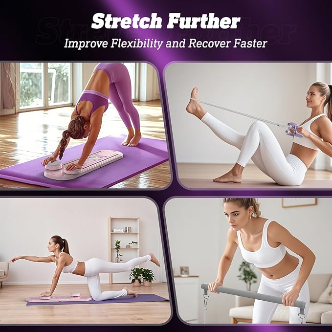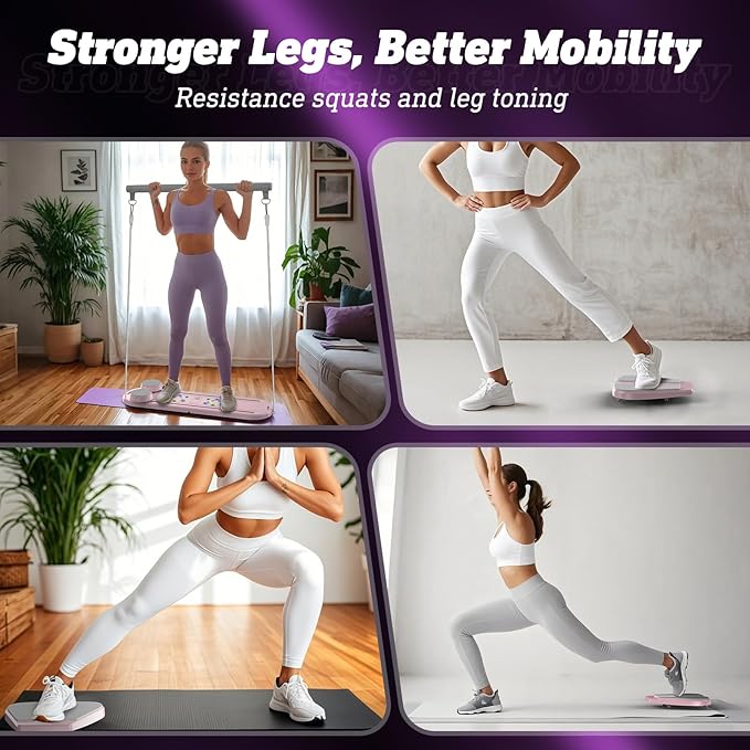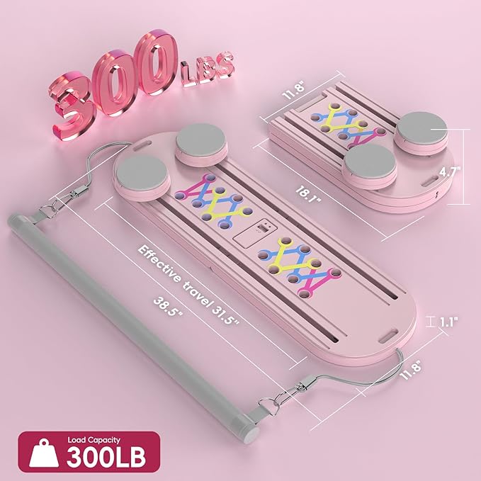 - 15-in-1 Full-Body Workout Pilates Board - Transform your workout with 15+ exercises in one sleek Pilates reformer! Master planks, crunches, squats, push-ups, and more. This all-in-one board tones muscles, boosts strength, and enhances flexibility, making it your go-to for home or travel fitness