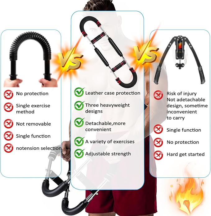 - ✔【Ergonomic Design for Safety and Comfort】Adhering to the design concept of putting safety first and comfort foremost, the Twister Arm Trainer has its metal parts wrapped in leather, effectively preventing accidental scratches. The thickened, anti - slip foam handles can provide a firm and comfortable grip even during intense workouts, allowing you to fully immerse yourself in the exercise without any concerns.
