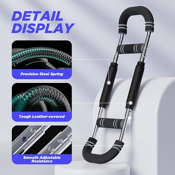 - HIGH QUALITY & MULTIFUCTION: Our Twister Arm Exerciser is U-shape design with your safety and comfort in mind. Each high strength metal spring workout bar is wrapped with a leather cover to prevent sports injury. The handle is made of thickened anti-slip foam, which is both anti-slip and comfortable
