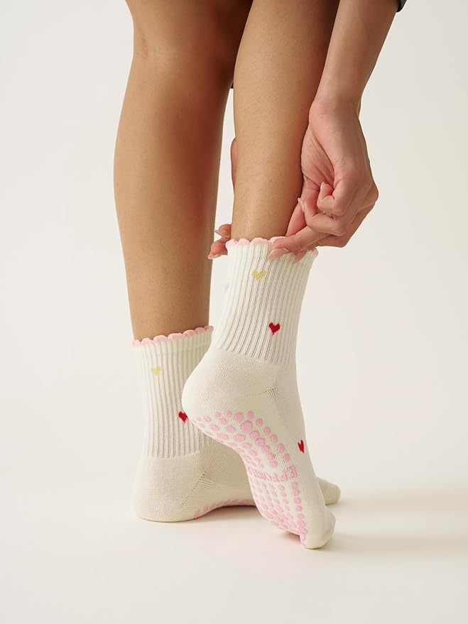 Crew Half Calf Grip Socks, Cutest Fruits Pilates Socks, Ruffle socks, Non-Slip, Barre Yoga Fitness